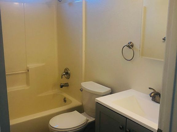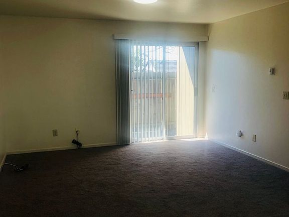 This downstairs 2 bedroom, 1 bath apartment has carpet, vinyl, dishwasher , range and refrigerator. The unit is located within walking distance to amenities and bus lines. Also includes a utility closet with washer/ dryer connections. The sliding glass doors from the primary bedroom and the living lead out to a fenced patio area. There is one off street parking space.