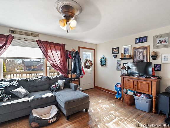 Great location in Corydon! Home features a oversized living room with picture window and hardwood floors. The eat in kitchen opens to the living room for easy conversations. Master bedroom has oversized private bathroom. Large deck wraps around on two sides and is perfect for cookouts, outdoor play and enjoying the day. Tons of room in the lower level. Need more space? Finished basement offers a family room, rec room, full bath and office/bedroom. (non conforming bedroom, there is no egress window.) Updates include; septic 2018 and roof 2023.