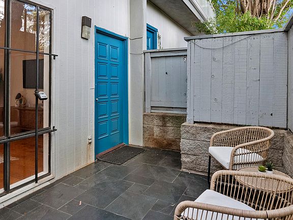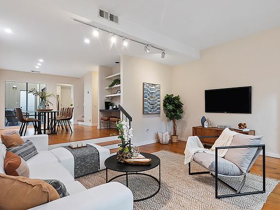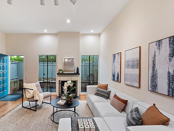 Beautifully updated 2 bed/2.5 bath + loft townhouse with 3 private outdoor areas in prime Westwood South of Wilshire Blvd. location in desired smaller 14-unit building. Enter through side walkway to spacious slate tiled patio to your own front door to unit. Incredible volume with high ceiling in living room with recessed lighting, fireplace and large windows overlooking front private patio. Step up formal dining room with built-in shelves and large windows overlooking interior courtyard atrium. Updated powder room off living room and dining room. Stunning remodeled contemporary kitchen with honed marble countertops, stainless steel appliances including gas range and oven, subway tiled walls, slate-tiled flooring and newer cabinetry throughout. Kitchen also overlooks and opens to atrium courtyard and has a back door for easy access to 2-car tandem parking. Upstairs includes a grand primary suite with vaulted wood-beamed ceiling, large windows with shutters looking into atrium and a 3rd level loft (ideal for home office), walk-in closet and rooftop wood finished deck overlooking greenery and trees. Primary bathroom includes stacked washer/dryer, updated floating sink and tiled shower. 2nd bedroom with large windows, plantation shutters and a full bath with subway and quartz finishes. Additional features include hardwood flooring throughout, newer system central ac/heat, Pets ok, Earthquake insurance included in HOA dues and extra storage in garage. Ideal close proximity to Westwood Village retail and restaurants, UCLA, Century City & Beverly Hills. Fairburn Elementary School. Move-in ready!