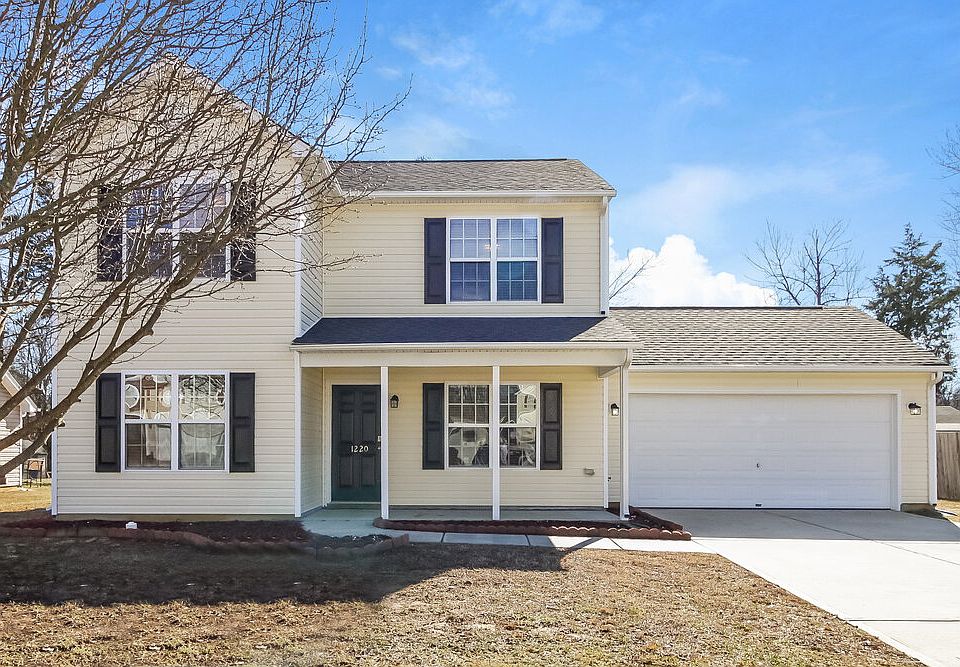 There's no lack of style in this three-bedroom, two-and-a-half-bathroom rental home in Burlington, North Carolina. The spacious living room with laminate flooring has a ceiling fan with a light, a convenient storage closet, and front-facing windows that peek onto the covered front porch. An adjacent den with additional front-facing windows extends the living space. The kitchen and dining room merge to form an open cooking and eating area with a door leading to the backyard. Granite counters in the kitchen beautifully complement the white cabinetry and stainless steel appliances. The upstairs main bedroom suite has an expansive walk-in closet and an en suite bathroom with a dual sink vanity, two mirrors, and a tub/shower combo. Call for a tour. Utilities must be transferred into the resident's name.