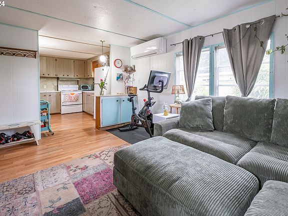 Charming 2-bed, 1-bath manufactured home with a private backyard that backs up to a serene creek, attracting delightful wildlife visitors. Conveniently close to town, this home offers the perfect blend of tranquility and accessibility. Water/Sewer costs are $80-90/month and are not included with the space rent. The clubhouse is available for rent, providing additional space for gatherings. The home features a minisplit system for efficient heating and cooling. Home is sold in as is