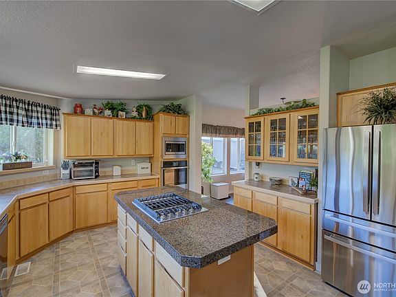 Escape to your secluded oasis near town! This charming home offers tranquility with a green belt backdrop yet is close to all amenities. There is CHEF'S DREAM KITCHEN with new appliances, tons of storage, WALK IN PANTRY, counter space galore and AMAZING VIEWS to enjoy from every angle. The primary suite is over-sized and has a SPA-LIKE bath! Outside, revel in the expansive, meticulously maintained yard, ideal for gatherings. There is a NEW LARGE COVERED PARKING AREA FOR A BOAT, RV, OR BOTH! There is also a new HUGE WORKSHOP/GARAGE with a FULL BATH and 200 amp! This GOREGEOUS home has been well maintained and just had NEW PAINT INSIDE AND OUT. And, if the amazing home in a GREAT CLOSE IN LOCATION isn't enough, the VIEWS are a SHOW STOPPER.