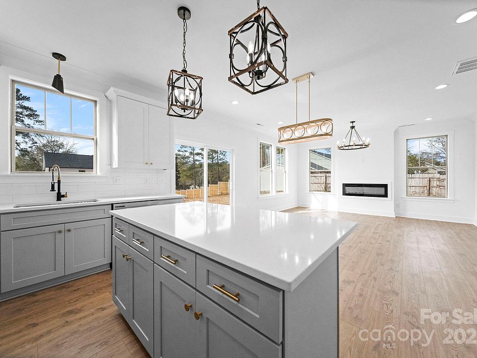 Beautiful new construction in Wadesboro, NC featuring 3 bedrooms and 2.5 baths with an open floor plan, 9 ft ceilings, laminate flooring on the main level, and tile in all bathrooms. Enjoy large windows with abundant natural light, a modern kitchen with two tone cabinets including soft close doors and drawers, large island for entertaining. Quartz countertops in kitchen and all bathrooms. Crown molding on the first floor with trimmed out windows and window sills throughout the house. High-end lighting and fixtures, and recessed lighting throughout. All bedrooms are pre-wired for ceiling fans. Upstairs includes a spacious primary suite with spacious primary bathroom including dual vanities with drawers for all your essentials, walk-in closet. Spacious laundry room on a second floor with another full bathroom. Exterior features a long driveway and great curb appeal and backyard for entertaining. Move-in ready with higher end quality finishes throughout. Two car garage thats finished and painted.