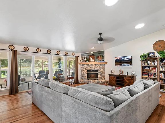 Gas fireplaceOpen floor planLarge sunroomBeautiful designed landscapingBeautiful park viewHardwood floorsWalking trail access