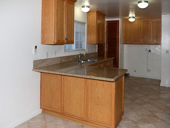 Freshly painted, remodeled 3 bedroom/2 bath unfurnished apartment in fourplex building. Spacious lower front unit. Laundry hookups. 2 parking space in front. Kitchen features new stove, newer custom cabinets and granite countertop. Porcelain tile flooring in dining room, kitchen, hallway and bathrooms. Wood laminate flooring in living room and all bedrooms. Newer dual pane vinyl windows throughout. Mitsubishi single zone air conditioning in living room/dining area. Plenty of storage cabinets. Owner pays for water, gardener and trash pickup. Tenant pays electric and gas.