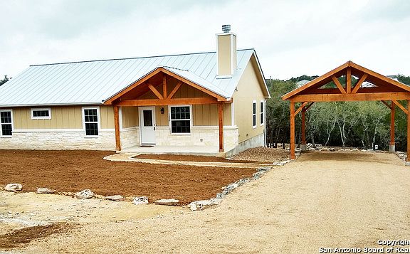 New Construction from Hamon Homes. 1546 sq ft living space with a unique, rustic carport and a large covered front porch. 3 BR - 2 BA in the popular Rancho del Lago West subdivision. Upgrades include metal roof on house and carport, granite countertops, tile shower surrounds, large deck, stainless appliances, ceiling fans, wood burning fireplace, large walk in pantry and much more. Just minutes from the boat docks at Potters Creek Park.
