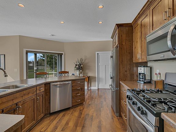 This beautiful patio home offers three bedrooms and a screened porch, with over 1800 square feet, 9 ft high ceilings, and high-end finishes. It is in a great Sartell location near shopping, dining, banking, and medical facilities. The spacious kitchen has custom cabinets, stainless steel appliances, an enormous breakfast bar, a walk-in pantry, laminate wood floors, and it walks out to the screened porch too. The large great room has ceilings that rise to 10 ft high, with a gas fireplace with attractive surround and large windows on both sides. The primary suite offers a private bath with two vanities, and a walk-in closet. You will love the laundry with plenty of cabinets, sink and clothes hanging bar. The home has in-floor heat, with natural gas forced air heat as well. There is a neighborhood association to take care of your snow and lawn (and the yard is beautifully maintained!) This one is ready for you to move in and enjoy!