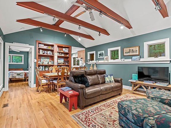 Nestled in the NC mountains, this beautiful architect designed & custom built cabin sits on 4.5 acres of pristine privacy. Surrounded by lushgreenery, the cabin offers a serene escape from the hustle and bustle of everyday life. Enter into an inviting screened-in porch with a woodburning stone fireplace, wood beamed vaulted ceilings, w/room for couch, dining, perfect for unwinding after a day of hiking/exploring. Inside, the cabin is open concept with hardwood floors, vaulted ceilings, beams & light filled windows. The living area features ample seating for lounging, plus a dining area for family meals & a fully equipped kitchen. Cabin has one primary bedroom, plus a sleeping loft! One bathroom with low entry shower. The exterior is hardboard siding. A spacious back deck provides the perfect spot to soak in the breathtaking winter views of the surrounding mountains. Just a perfect retreat, it promises to be a truly memorable getaway for those seeking a great escape + So Much More!