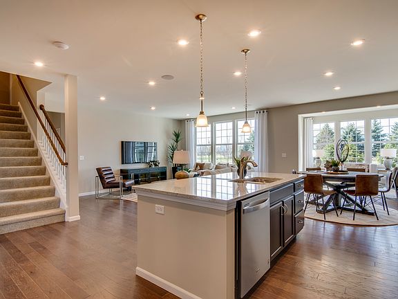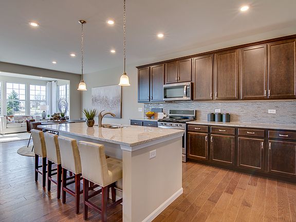Welcome to Naper Commons, a beautiful new community in School District 200. Spacious and gracious! This Continental is a great open concept two-story family home. You will have plenty of storage with a 9' unfinished full basement with bathroom plumbing rough-in plus a large storage area in your 2-car garage. You will love preparing meals in your gourmet kitchen featuring a large island and built-in SS appliances, granite counters plus a ceramic tile backsplash. Enjoy your beautiful owner's suite complete with a large walk-in closet and luxe ensuite bath with a double bowl vanity with quartz counter and large tiled shower with glass door. Complete relaxation is yours in your bright airy sunroom. Your great room, casual eating area and kitchen all flow together for a seamless entertaining space. You have a separate formal dining room for those special occasions. There is a flex room that you can use as a den, office or bedroom - your choice! Your entertaining area expands to the back yard with a patio off the sunroom. Enjoy the convenience of a 2nd floor laundry room. Homesite 104. Photos of similar home shown with some options not available at this price.