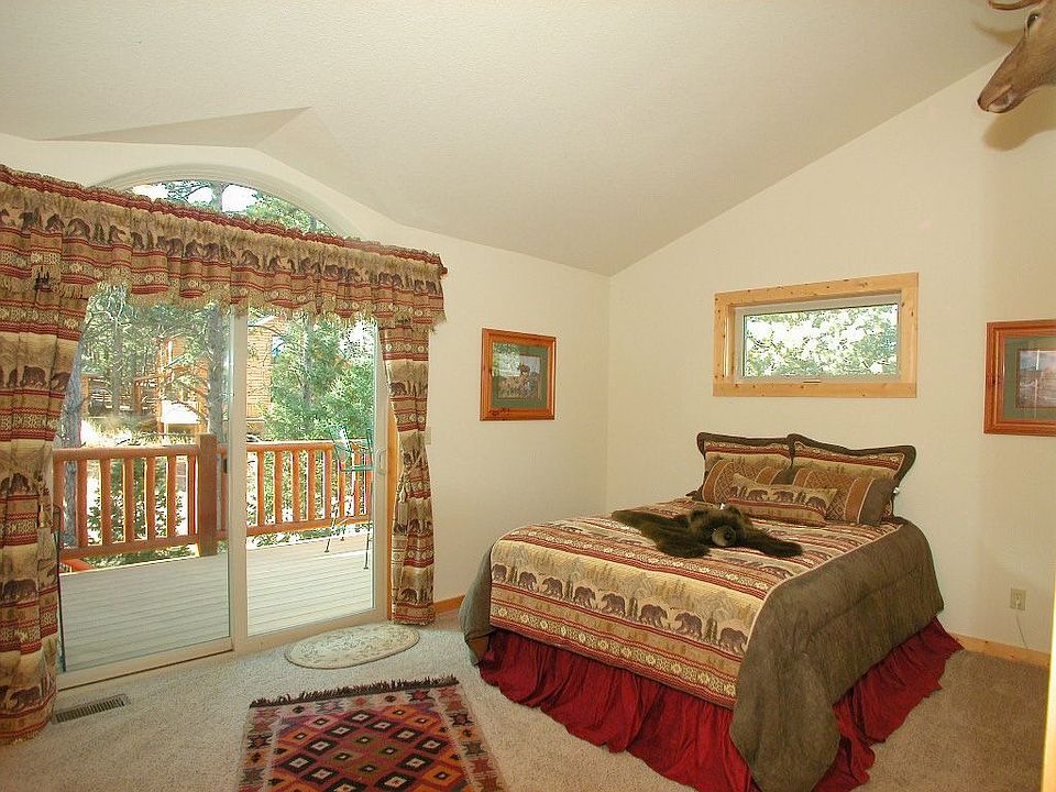 Towering pines, sunshine & a gorgeous custom log sided home only 5 minutes to downtown Woodland Park. Full of charm & character with interior log wall accents, 20 ft. high knotty pine cathedral beamed ceiling & floor-to-ceiling windows looking out at the towering pines in the park-like front yard. Plank pine flooring, knotty pine doors & custom antler chandeliers. Lofted family room or office with knotty pine cathedral beamed ceiling overlooking the living room featuring a rustic rock faced gas log fireplace. Total one level living with a main level master suite & 5-piece master bath Garden level basement. Cat-5 wiring. Built Green & E-Star rated. Structured insulation panel construction. Insulated foundation walls. New Kohler kitchen sink. Gas range. Built-in speakers. Huge wrap-around front deck & large rear patio with small deck. Sits on a beautiful .63 acre corner lot backing to a ?no build? easement behind the private back yard. Flat yard areas in front & on the side. Lots of large trees around the entire property.