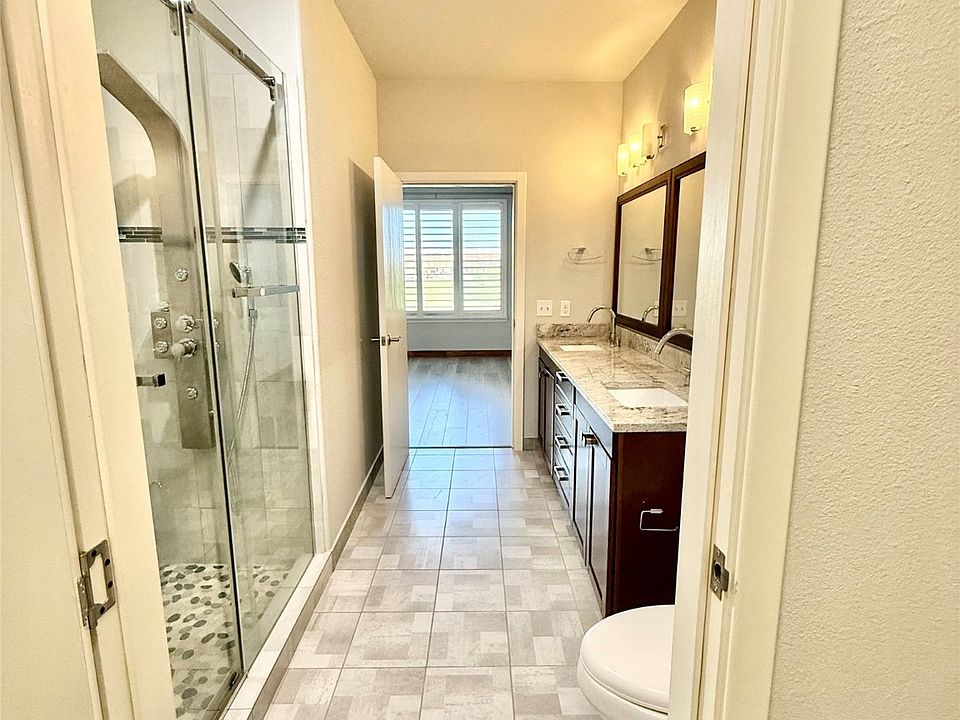 This stunning condo complex is located right in the heart of Carrollton, with plenty of shopping centers, restaurants, and grocery stores including H-Mart, Ranch 99, Daiso, and variety of restaurants. Easy access to George Bush and I-35. Water and trash services are covered by HOA. Upgraded back splash and granite in the kitchen. Upgraded beautiful back splash tiles in the both bathrooms and the kitchen. Upgraded planation shutters. Washer, dryer, and refrigerator are included. Extra shelves in mater closet.