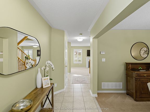 Welcome to this inviting 3-bedroom, two-storey family home, tucked away on a quiet street in Milton's coveted Dempsey neighbourhood. Offering nearly 2,500 sq. ft. finished living space. This well-designed home combines timeless charm with modern comfort. Upon entry, you're greeted by a large family room and dining room-perfect for hosting gatherings or enjoying cozy evenings together. Toward the back of the home, the bright living room with a gas fireplace and the spacious eat-in kitchen create a warm, connected hub for everyday living. A walkout leads to the generous backyard, ideal for barbecues, play, or designing the outdoor oasis you've always imagined. Low-maintenance perennial gardens add colour and beauty throughout the seasons. Upstairs, you'll find three generously sized bedrooms, including a serene primary retreat. A highlight of the upper level is a peaceful private balcony-an inviting spot for morning coffee, people watching, or unwinding with a good book. The finished basement offers versatile space that adapts to your lifestyle, whether you need a home office, kids' playroom, or media lounge. With parking for three vehicles and a location just steps from top-rated schools, parks, transit, trails, the library, and everyday essentials, this move-in ready home offers the perfect balance of comfort an convenience. Don't miss this opportunity to make your family's next chapter in one of Milton's most desirable communities. Book your showing today!