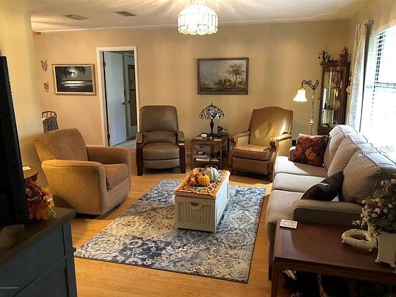 On an acre-lots of privacy and room for a pool. There is tile and laminate in all rooms, but the master bedroom and features a split bedroom plan. The updated kitchen(white cabinets and solid surface counter tops) is open to two eating areas and the family room. It overlooks an enclosed porch (off the family room) with HVAC overlooking the back yard-nice place to enjoy a cup of coffee or a glass of wine! Both baths have updated vanities-the Master has beautiful tile.The home has a 2006 HVAC, a 2016 solar water heater and an extended garage with a built in work table.There is an irrigation system that uses well water, but the home has city water. No HOA. Zoning allows for 4 (personal use only)horses.