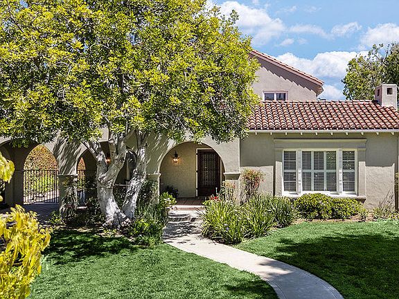 Nestled in Pasadena's most coveted estate neighborhood one block from the prestigious Langham Huntington Hotel, this beautiful two-story Spanish home has been lovingly maintained & cherished by its owners. Light-filled rooms, high ceilings, remodeled bathrooms, wood floors, plantation shutters & a versatile floorplan are hallmarks of this treasured family home. An arched front porch welcomes guests into an entry foyer, and a charming living room with a Batchelder-tiled fireplace, picture window & French doors leading to a romantic patio. Across the foyer is an elegant dining room with crystal chandelier & sconces, making dining a special occasion. The generous chef's kitchen, with abundant cabinets & built-in appliances, spills comfortably into a family room with fireplace, wet bar & a breakfast nook. French doors open to a trellised patio & a private grassy backyard, ideal for alfresco entertaining & outdoor enjoyment. Completing the delightful main level are a convertible den, an attached period bathroom, a rear bedroom with an adjoining bath & a laundry room. The second floor showcases four spacious bedrooms & two beautifully-remodeled bathrooms, including a sprawling primary suite with fireplace, French doors, balcony, custom walk-in closet & a luxurious bathroom. With its prime location just steps from Lake Avenue shops & restaurants, Lacy Park, Caltech, Poly & the Huntington Library Gardens, this home is an exceptional Pasadena jewel seeking its next loving owner.