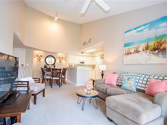 Welcome home to The Enclave, one of the most sought-after communities in Naples! This beautifully furnished Tommy Bahama-inspired 3-bedroom, 2-bath corner condo offers a spacious living space with vaulted ceilings. The home is pet-friendly and is just minutes from pristine beaches, 5th Avenue's vibrant shopping, Marco Island, The Great Wolf Lodge, dining, and all the best that Naples has to offer. Enjoy resort-style living with access to top-notch amenities, including a sparkling pool overlooking a serene lake and fountain, tennis, Jacuzzi, fitness center, mahogany bar area, meeting room, racquetball court, billiards, barbecue area, and more. Don't miss the chance to experience the best of Naples comfort, convenience, and luxury all in one place!