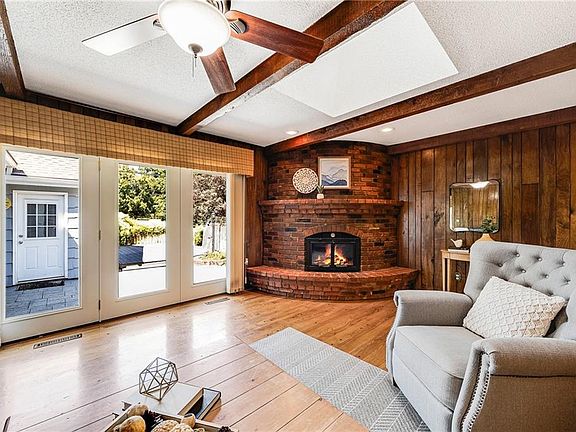 Beautiful neighborhood full of sprawling Mid-Century ranch homes!! Just a short trip to the highway and neighborhood Apple Market grocery store. This unique L shaped home is situated on the corner and has a countryside view behind. Enjoy the natural light, landscaping and views from the family room, patio and deck. Main level is very spacious, and you will love the entertainment opportunities here! Large 1/2 bath and laundry off the kitchen, custom cabinets, main level family room with wet bar and skylights, brick fireplace, lots of wood floors and most likely wood under the carpeting on the main level (buyer to verify). Huge basement with recreation room and lots of storage. Lots of space for the money!! Three bedrooms and 2.5 baths on the main level. Great neighbors so Schedule your private showing today!