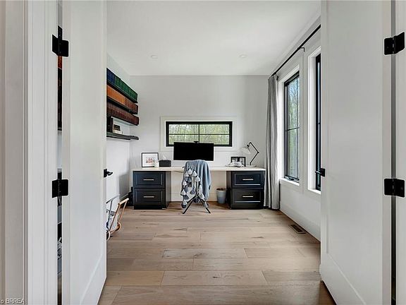 This stunning custom-built home blends modern elegance with practical living, offering high-end finishes and generous space inside and out. From the moment you enter the bright, welcoming foyer, you're greeted by an oversized walk-in closet that doubles as a mudroom—perfect for keeping everything organized. Just off the entryway, a spacious home office offers an ideal work-from-home setup, complete with ample lighting and wiring for a multi-camera security system. The main floor boasts an airy open-concept layout with vaulted ceilings and striking cathedral windows that flood the living room with natural light. A propane fireplace adds warmth and charm, creating a perfect space for both relaxing and entertaining. At the heart of the home is a chef-inspired kitchen featuring a massive quartz island that serves as a prep area and social hub. High-end appliances include a five-burner gas cooktop, double wall ovens, a stainless steel refrigerator, and a matching dishwasher. Thoughtful details like a pot filler, soft-close cabinetry, custom lighting, and a separate canning/prep room enhance both style and function. The adjoining dining area overlooks the private backyard and tranquil ravine, offering a beautiful setting for everyday meals and special gatherings. Upstairs, you’ll find three spacious bedrooms, a full bathroom, and a convenient laundry room. The luxurious primary suite features a walk-out balcony with peaceful views of a nearby horse paddock and hot tub—perfect for quiet mornings or evenings. The spa-like ensuite includes a deep soaker tub, double rainfall shower, and large walk-in closet for a true retreat experience. The fully finished basement offers even more living space, with a large family room, fourth bedroom, and full bathroom—ideal for guests or extended family. Additional highlights include heated garage floors, premium finishes throughout, and a serene, natural setting that offers privacy and beauty.