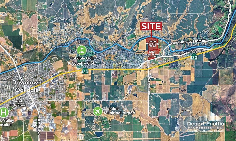 Unique 143-acre River Bluff estate located in East Oakdale. Includes two (2) parcels, comprised of 52.7 acres previously farmed to almonds and 90 acres previously farmed to walnuts, each with an existing home and separate access. One of the few large assemblages of land remaining on Orange Blossom Rd. Fertile loamy sand with abundant surface water rights making this ranch ideal for crop production. Rare and impressive backdrop of the Stanislaus River which borders the north end of the property. Only 4.7 Miles from Historic Downtown Oakdale, known as the ''CowboyCapital of the World''. Surrounded by ranches, major agricultural operations, farms, and packing facilities. 52.7 acres has the potential for future development, up to 50 one-acre lots. Just a quarter mile from the planned phase 3 of the North County Corridor Project, an 18-mile realignment of State Route 108 around the Modesto,Riverbank and Oakdale communities, currently in phase 1. Please contact Mark McManis to set up tour, call/text at (209) 681-6392.