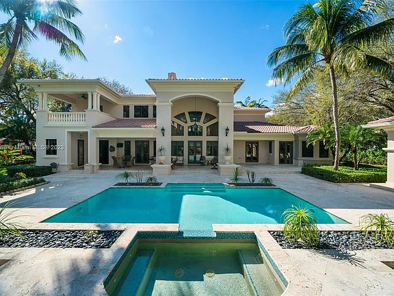 This stunning 6,626 sq ft home with 6 bedrooms, 7 bathrooms and 1 half-bathroom is on a lushly landscaped 47,916 sq ft lot in the desirable Pinecrest community. The grand entrance area features a foyer with soaring ceilings, marble flooring and beautiful natural light. Living areas in the open floor plan include a formal living room and fireplace, formal dining room, gourmet kitchen, and a family room that overlooks the magnificent backyard oasis. The main suite on the ground floor provides a private retreat and a luxurious spa-like bathroom with double vanities. Additional features include an elegant library, large covered terrace, sparkling pool, jacuzzi, playground and a summer kitchen. A unique estate perfect for family fun and recreation.