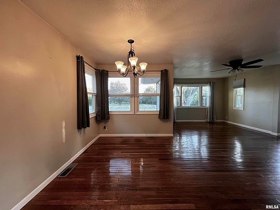 This three bedroom home located on the south edge of Macomb close to schools and hospital has many new updates and large lot. The main level has a living room with hardwood floors, attached dining area also with hardwood floors, eat-in kitchen that was updated in 2018 with tile flooring and walkout to the covered outdoor living area with stamped concrete patio, ceiling fans, firepit, hot tub and attached oversized two car garage with lots of storage area. This home has a full bath updated in 2018, two large bedrooms with closets and one room that could be used as a bedroom or home office. All updated in 2018/17 with new lighting, windows, and flooring. This home has a full basement that is currently unfinished.