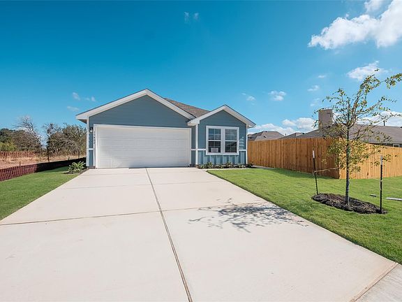 UNDER CONSTRUCTION - EST COMPLETION NOW!!!!!!!!!!!!!!!!!!!!! Photos are representative of plan and may vary as built. Step into the Taylor floorplan at Durango in Mustang Ridge, TX. This home offers 1,600 square feet of living space across 4 bedrooms and 2 bathrooms. As you enter the side-entry front door you’ll find two bedrooms and a full bathroom towards the front of the house. Making your way towards the back of the home you’ll find the third bedroom as well as the kitchen that features stainless steel appliances. The kitchen flows directly into the spacious living room that overlooks your beautiful covered back patio and backyard, making the Taylor perfect for entertaining. Next, you’ll find the spacious main bedroom and bathroom that includes a double-vanity sink, walk-in shower, separate toilet room, and walk-in closet. This home comes included with a professionally designed landscape package and an irrigation system as well as our America's Smart Home® package that offers devices such as the Qolsys IQ Panel, Video Doorbell, Alarm.com app, Honeywell Thermostat, Deako Smart Light Switch, Kwikset Smart lock, and more.
