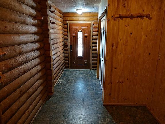 For Sale by Owner: Beautiful country home located on 3.6 acres of serene, private land outside of Ford, KS. This one-of-a-kind home is a full log cabin with incredibly unique design. The main floor consists of 1,288 square feet with 2 large bedrooms with double closets in each and 2 full bathrooms. This beautiful home has an open concept design for the living and dining room. The kitchen contains a walk-in pantry, new dishwasher, electric stove and microwave. Upstairs laundry hook-ups are available for easy access. The home sits on a full 1,288 square foot basement with a large family/entertainment room, two bonus bedrooms and a spacious storage room. The 3.6 acres of outdoor land includes a fenced pasture with a small covered shed, water tank and spigots for farm animals. There are also two large chicken coops available to raise your own hens! The house has a gorgeous, covered back deck where you can relax and soak up the sunset and wildlife around you! The property also contains a large 30x24 farm utility storage shop with a wood burning stove and large sliding doors. Recent updates include: windows replaced in 2021, new outside AC unit installed in 2022, roof replaced in 2024, radon mitigation system installed in 2023, logs re-stained and sealed in 2024, and fiber internet and phone access are actively available.