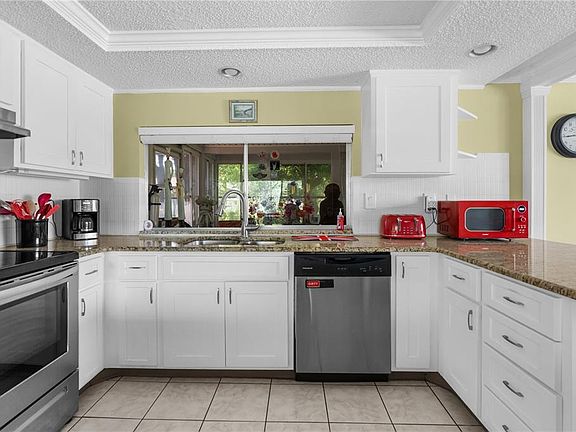 Brand New Roof July 2025 and New Water Heater Jan 2025. This beautiful 1,334 plus finished garage making this home 1,730 of finished living space at 12203 Buttonwood Row in Hudson, FL offers great value and is perfectly positioned in a convenient location close to shopping, restaurants, and major roads. Located in the heart of Hudson, this 2-bedroom, 2-bathroom house features an open floor plan that makes everyday living easy and comfortable. You'll love the high ceilings and crown molding that add character throughout the home. The kitchen comes equipped with stainless steel appliances and granite counters, making meal prep a breeze. Hard flooring flows through the main living areas while cozy carpet keeps the bedrooms comfortable. The split bedroom layout provides privacy, and ceiling fans help keep things cool year-round. Step outside to your screened-in porch where you can relax and enjoy Florida's beautiful weather without worrying about bugs or sun. The finished garage serves as a bonus room, giving you extra space for a home office, game room, or whatever fits your lifestyle. When you want to cool off, the community pool is just steps away. This home sits in Hudson, putting you close to everything you need. Shopping centers, restaurants, and major roads are all nearby, making your daily errands simple and keeping you connected to the greater Tampa Bay area. With its practical layout, quality finishes, and prime Hudson location, this property offers comfortable Florida living at its best. The combination of indoor and outdoor spaces, plus community amenities, creates the perfect setting for your next chapter.