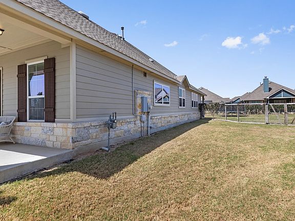 2.25 VA assumable interest rate. Located on a large .33-acre lot in a quiet cul-de-sac in the sought after Crossvine subdivision, this 2018 David Weekley built home is clean and move in ready! Single story - 3057 sq ft - 4 bedrooms/3.5 bathrooms/3 car garage - amazing open floor plan - this house is a must see! Spectacular curb appeal - a beautiful covered front porch welcomes you into the home. Once inside, the high ceilings, crown molding and new wood look tile throughout the main areas of the home are sure to please. At the front of the home is a private bedroom with an ensuite bathroom in addition to an office/study with double doors for privacy. The gourmet kitchen is the heart of the home and is open to the large dining space and living room. The upgraded kitchen includes an expansive 7 X 7 island with seating, an abundance of counter space (granite countertops) and upgraded 42-inch cabinets with tons of storage. The cook of the family will enjoy the 5-burner gas cooktop as well as the built-in wall oven and microwave. The kitchen also features a large pantry, and a built-in buffet has been added to the dining area adding additional storage and a display area. The home features two living areas - the main family room is very spacious and open to the kitchen and eating areas and features a beautiful stone, floor to ceiling gas fireplace; the second living space is tucked away near two of the secondary bedrooms making it an ideal game room or playroom. The expansive primary bedroom has a large sitting room perfect for a nursery, exercise area or additional workspace. The ensuite bathroom with separate vanities, garden tub, and large shower will not disappoint nor will the 7 X 18 walk-in closet. The 3-car garage has automatic door openers and is equipped with a 220 outlet for electric car charging. The water heaters and water softener are in the garage as well for convenience and easy maintenance. As you walk in the home from the 3-car garage, there is a conveniently located built in clutter free "drop zone" for organization as well as an oversized laundry room and a privately located guest half bathroom. Relax outside on the covered back patio which is big enough for a large seating area and a separate area for cooking; there is a gas stub out connection ready for an outdoor kitchen (never change out a propane tank again!). The backyard is fenced and features plenty of space for play and a future pool. There is also a shed for additional storage. Popular neighborhood amenities include the community resort style pool, walking/jogging/biking trails, numerous pocket parks, a fishing pond, food truck Fridays, movies in the park, and entertainment at the amphitheater. Located within the highly rated SCUCISD schools, minutes from Randolph Air Force Base, convenient to local shopping & dining, and major highways for easy commuting.