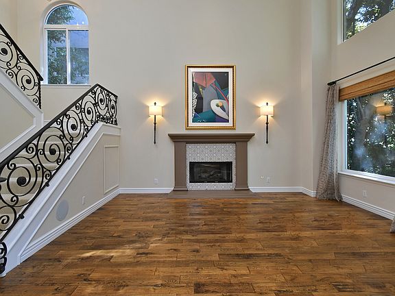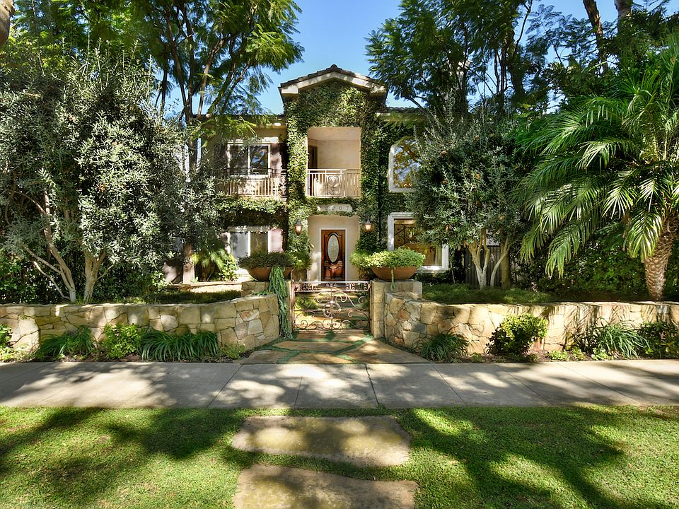 Located on a picturesque, tree-lined street in the heart of the coveted Silver Triangle, this custom-built newer home features an inviting gated courtyard and a detached guest house perfect as a home office or studio. Step inside to a thoughtfully designed floorplan with soaring ceilings and expansive picture windows that bring in natural light. Highlights include hardwood floors, an elegant living room with a mantled fireplace, and a separate formal dining room. The brand-new center island kitchen boasts built-in stainless steel appliances, including double ovens, refrigerator and a Wolf 5 burner gas range. A breakfast bar with seating for four opens to the family room, which features a second fireplace and French doors leading outside. The home offers a downstairs bedroom and full bath, plus three additional bedrooms upstairs. The spacious primary suite includes a luxurious bathroom with dual vanities, a spa tub, and a glass-enclosed shower. There is also a large walk-in closet and French doors opening to a private terrace with treetop views. The upstairs front bedroom also features a covered outdoor terrace. Professionally landscaped gardens surround the private backyard, complete with a BBQ island, fountain, and private entrance to the approximately 600 sq. ft. guest house/office with high ceilings and a bathroom. The finished two-car detached garage includes an EV charger. Additional features include three-zone high-efficiency central heating and air, a Control4 smart home system, new Nest thermostats, and an updated alarm system. Located south of the Boulevard, just moments from the best shops and restaurants Studio City has to offer. Carpenter School is right around the corner, and there is easy access to the city and major studios.