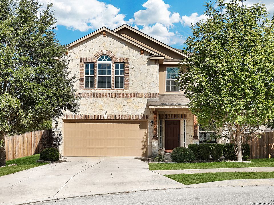 This spacious 4 bedroom, 2.5 bath home is located on an oversized lot in the highly sought after Alamo Ranch subdivision! Step into this spacious home with an open concept to family, kitchen & eat-in dining area, there is also a separate formal dining area. Gorgeous kitchen features granite countertops, stainless steel appliances, gas cooking, deep sink, breakfast bar for stools, tile flooring & accented backsplash. Upstairs the grandeur continues with a large loft, and all 4 bedrooms. The Master ensuite boasts double vanity, separate garden tub & shower. The oversized backyard has endless possibilities for entertaining. Entire home has been freshly painted. Close to several shopping, dining and military bases.