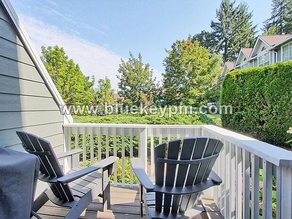 Beautiful townhome in Beaverton near Greenway Park and Ridgecrest Park. Easy access to shopping, restaurants and outdoor weekend adventures. This home welcomes you with a one car garage and covered porch entry. The living area is very open with many large windows that let in the natural light, a gas fireplace, island eatery bar, easy care laminate plank flooring and a deck off the dining room area. It has a galley style kitchen with stainless steel appliances, an abundance of cabinets for all your storage needs, gas stove/oven and a huge pass thru window with eatery bar. This home has two spacious primary bedroom suites on second floor, one with a walk-in closet. There is a laundry room with washer and dryer for your use. This home is in an HOA, has Central Air and Heat. 1 pet is welcome to 30 lbs max weight with an additional refundable pet fee of $800. Tenants pay all utilities.