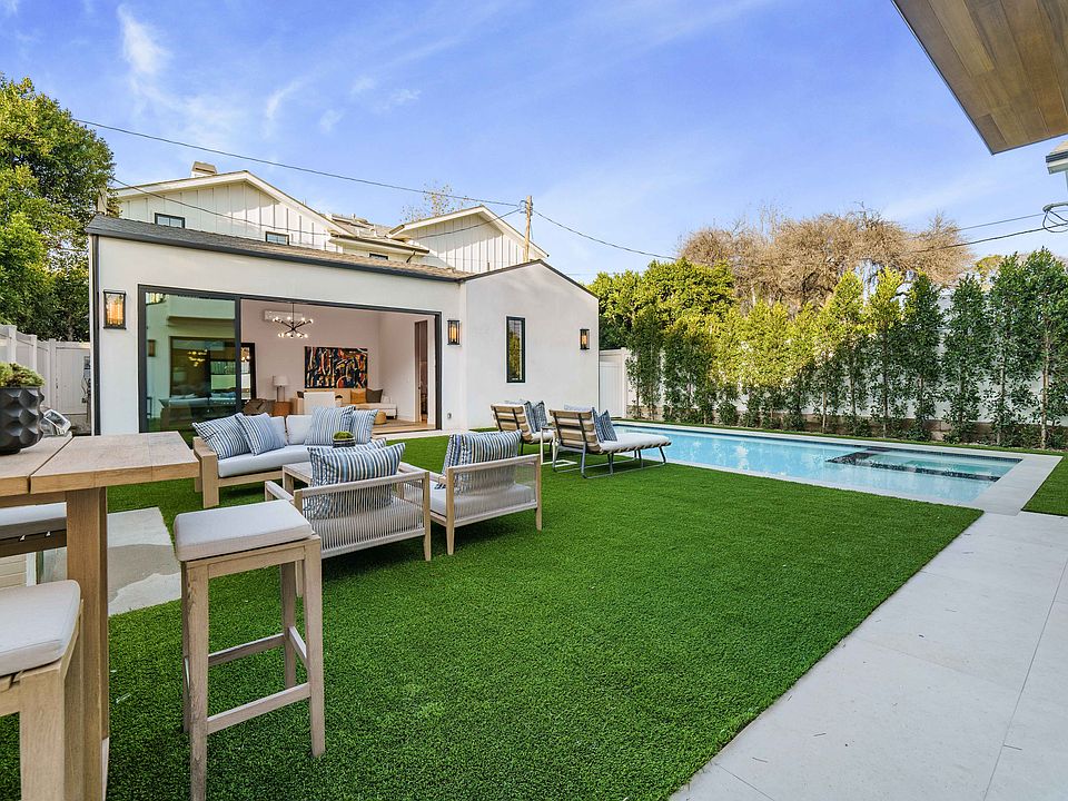Graceful and Spacious Modern farmhouse, with stunning curb appeal, a luxurious cozy retreat on one of the most charming streets in the valley. Located in coveted and convenient Studio City, this property boosts an open welcoming floor plan and complete with ADU, providing enough room and space for all. Square in Footbridge Square neighborhood, both home and ADU have custom finishes, 6 BR 6.5 BA in approx. 4,100 sq ft on an approx. 6,800 sq ft lot. The primary residence offers open and bright living spaces, a picture window and dining area with wood accent wall to frame your table. Gourmet inviting kitchen features custom cabinetry, stainless-steel appliances, quartz countertops, and center island with waterfall design and bar seating. Kitchen flows into equally welcoming family room with custom built-ins, fireplace featuring a porcelain accent wall, and sliding glass doors to patio. Entertaining a must in a backyard that features a turfed area, BBQ area with brick design, and of course pool/spa! Comfortable accessory dwelling unit complete with living area and kitchen, separate bedroom with walk-in closet, and three-quarter bath. Wonderful primary suite is a true retreat, featuring a pitched ceiling beam design, an electric fireplace with porcelain accent wall, walk-in closet, and private balcony. Complete vision of tranquillity with a large walk-in shower with sitting bench and porcelain tilework, soaking tub, and vanity with make-up mirror. Home is uncommonly complete come and enjoy entertainer/designer finishes such as custom woodwork/stonework, designer lighting fixtures, custom wall finishes and accent designs, Control 4 smart home system, solar panels, and security system with alarm/cameras. Fully furnished and available 11/15!