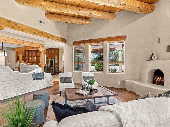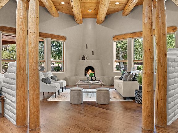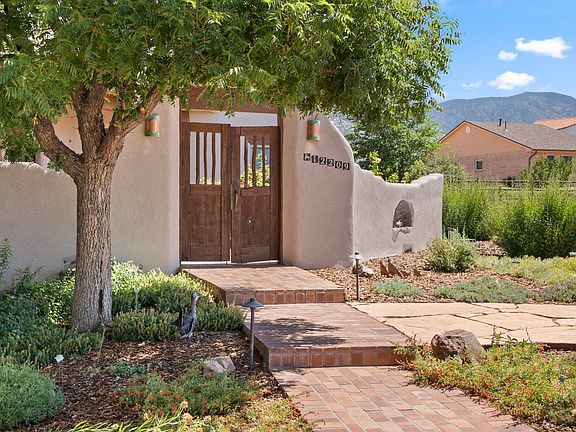 One-of-a kind spectacular custom single story Pueblo home on 1 acre lot in N. ABQ Acres.Showcasing High Country Gardens designed by NM Landscaper, Hunter Ten Broeck. Property has more than 40 trees, hundreds of plants, bushes, grasses and benches (irrigated) and exquisite fountain honed by SF Artisan, Greg Robertson. Property boasts unobstructed views of Sandia MT and City Lights, flat lot with home perfectly setback for privacy, 17 skylights, traditional Vigas and Kiva fireplace, Anderson windows, sprawling porch for hot summer nights, private well, radiant heat and fenced yard. Completely updated: New stucco, TPO roof, outdoor lighting, Hunter D blinds, Garage coating, solar gate, cement driveway, wood flooring, updated baths, lighting, fans and hardware. Its a SHOW STOPPER! MUST SEE