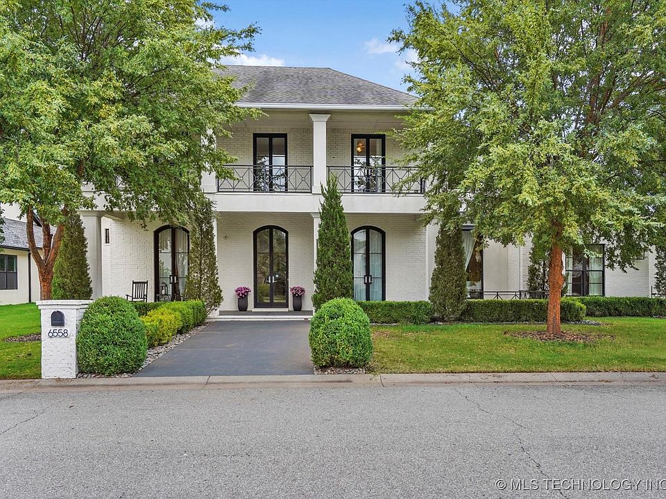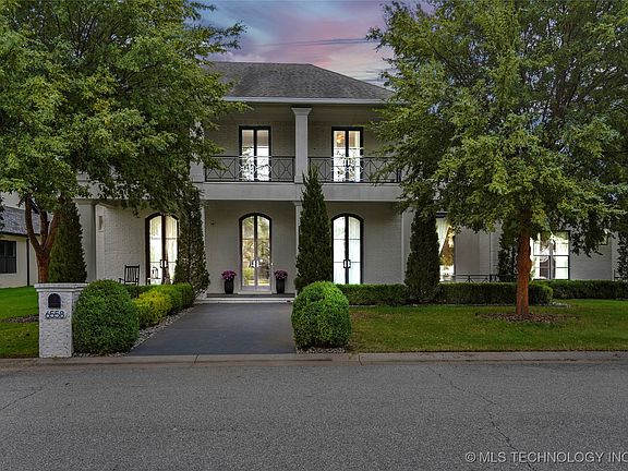 Welcome to this beautiful home in the gated community of Woodmere. This custom one-of-a-kind home, built by Rob Key with over 5,800 Square Feet (AP), features 5 spacious bedrooms, 4 Full Baths, 2 Half Baths, with a 3 Car Garage. 4 of the bedrooms have their own private bath and walk-in closets. The master suite and guest bedroom are on the main floor, along with a half bath. Upstairs, you will find 3 more bedrooms, 2 with private baths and large walk-in closets, spacious 5th bedroom that could be used as a game room/gym. Separate theater room plus an open bonus area with wet bar and half bath. Soaring Ceilings throughout with 12ft doors. It also includes a separate office off the entry. The large kitchen is the heart of the home, featuring a striking center island with marble waterfall countertop, two sinks, Sub-Zero refrigerator with a recently updated Dishwasher. The spacious laundry room has a sink with ample cabinets for storage and space for an additional refrigerator. The master bedroom is a luxurious retreat. Its bathroom includes custom his-and-hers closets, separate vanities, a soaking tub, and a walk-in shower with multiple showerheads, including a rainfall feature. The doors to the master suite are made from reclaimed cypress wood from Louisiana. High-end lighting from Visual Comfort illuminates every area of the home. Enjoy the outdoors on two large balconies in the front and back of the house. The home has elegant 12-foot iron exterior doors with a stunning Iron staircase with a built-in wine cellar. The backyard has 2 separate patios, off the Master & Living with a fireplace. Built in Sonos speakers outside and a custom 36x30 Basketball Court with turf. 8ft Full Privacy fence on a corner Lot in a cul-de-sac. A must-see home in the heart of South Bixby. Schedule your appointment today.