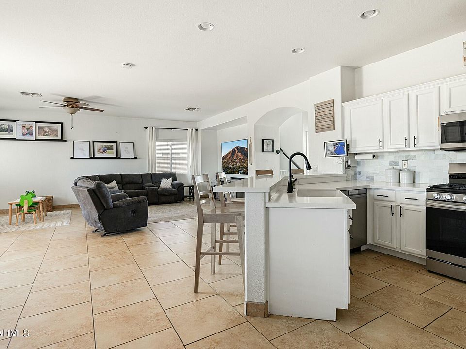 Welcome to your dream home in Avondale! Situated along the scenic Coldwater Golf Club w/ breathtaking mountain views, this home offers the perfect blend of modern updates, functionality, and outdoor living. Step inside to find an open concept 1st floor showcasing a fully remodeled kitchen w/ quartz countertops, tile backsplash, refinished cabinetry, LED under-cabinet lighting, farmhouse sink and spacious walk-in pantry. The kitchen also features updated Samsung stainless steel appliances and a breakfast bar ideal for casual dining which sides the powder bathroom. Upstairs, a large flexible loft offers endless possibilities; a home office, playroom, or media space. The oversized primary suite welcomes you through double doors and features stunning golf & mountain views. Step out onto your private balcony to enjoy serene Arizona sunsets! The luxurious primary bathroom was fully remodeled in 2022 with a walk-in tiled shower, private water closet, and walk-in closet. Two additional bedrooms, each with walk-in closets, and a full guest bathroom complete the second floor. Outdoor living shines in the backyard with a fully enclosed, heated swimming pool, extended covered patio, artificial turf, and a low-maintenance landscape, creating the perfect setting for weekend BBQs and family gatherings.