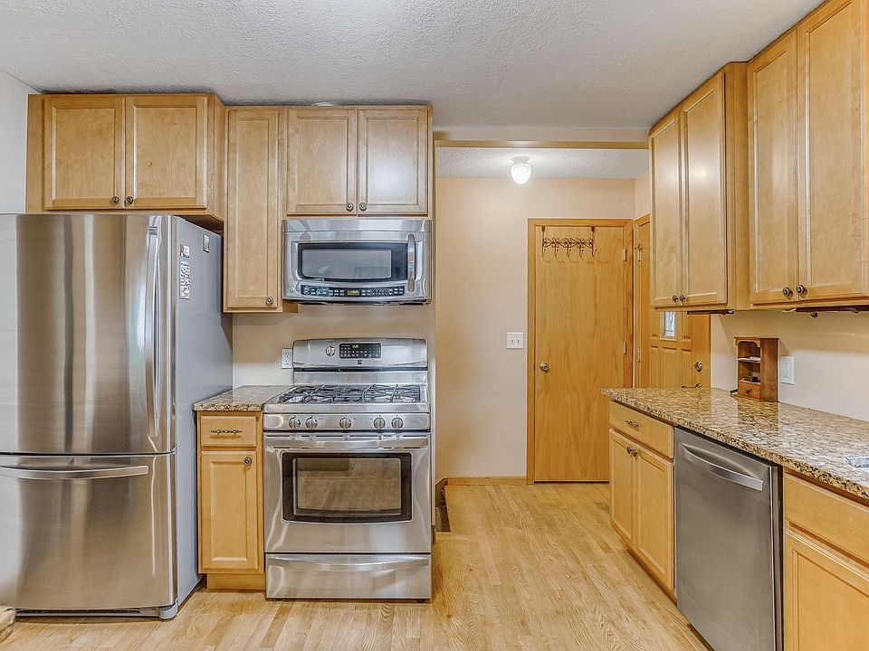 Close to everything, convenient central location, shopping, dining and entertainments, schools and parks. Approximately 4 miles to downtown Minneapolis. One level living 4 bedroom 2 bath in this very well cared for updated rambler. Beautiful kitchen with stainless steel appliances, granite countertop and breakfast bar, floor to ceiling, Maple cabinets with slide out shelves in cabinets. And soft clothe drawers and doors. Hardwood floors. Window over kitchen sink. Stove is vented out through the roof. Wheelchair ramp installed, but easily removable. Plus separate steps to side deck. Some handicapped features, main floor laundry, plus separate laundry down. Main floor walk in shower/tub. Oversized, heated/insulated 2.5 car garage, with concrete floor, separate elec. 2 overhead garage doors with openers, mounted TV makes this a true man cave with 2 work benches and plenty of shelving. Plus extra 8x12 storage shed, and several Rubbermaid sheds. Plenty of off-street parking, in long driveway plus paved slabs next to garage. Great for small business owner. Storing trucks/equipment, boat or toys. Front deck an covered side porch, private backyard, with privacy fenced yard. Great for entertaining and family fun. Some mounted security cameras and video doorbell. Beautiful Japanese flowering Crabtree. Very well cared for home and yards. Finished spacious lower level perfect for in-law apartment of rental, with separate laundry. Brand new AC unit installed. 10-Year Warranty will be put in buyer's name.