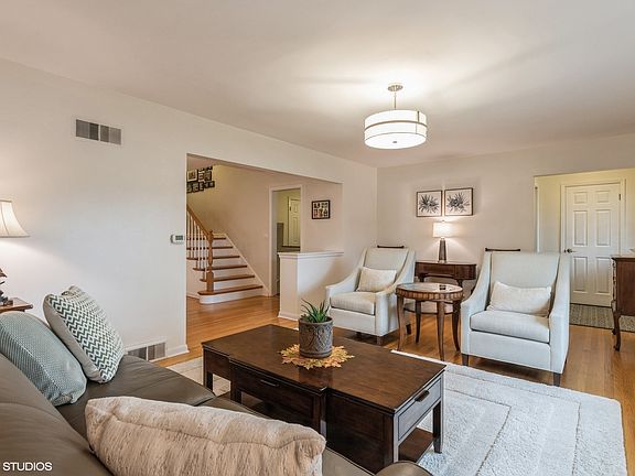 Beautifully Updated and Move-In Ready Split-Level Home! This exceptional 4-bedroom (all bedrooms on 2nd level), 2.5-bathroom home, featuring a private primary bath, has been fully renovated with quality upgrades throughout. Recent improvements include a new kitchen with modern appliances and new flooring, updated bathrooms, electrical panel, stylish light fixtures, ceiling fans, plumbing, and HVAC. Family room in lower level has new carpet (2023). The home also boasts new doors-including front, back, and garage doors. A French drain system (installed in 2018) and an annually serviced flood control system offer peace of mind, while refinished hardwood floors (2017) add warmth and charm. The fully fenced yard and covered back porch offers privacy, perfect for outdoor enjoyment. Located conveniently near Lutheran General Hospital, this home combines style, functionality, and a prime location.