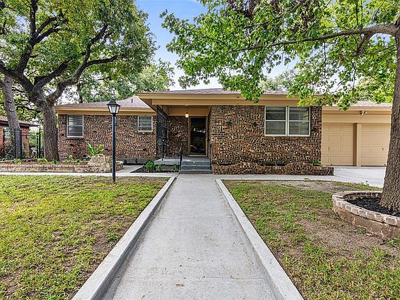 This All Brick, Open Floorplan home offers 3 Bedrooms, 2 Living Areas each living area has a Fireplace, one of the living areas could be used as a Study, Original Hardwood Refinished and Ceramic Tile Floors throughout the home, 2 Updated Bathrooms, Solar Panels are owned, Back Yard is fenced and has a Large Storage Building, Back Porch is covered, Recently Update Landscaping, Brick and Stone Mail Box. Large Trees, *Buyers Agent or Buyer to verify schools