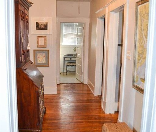 Historic 1926 home located just a block away from Daffin Park. This house has had several improvements, which makes it an extremely enjoyable place to live and partake in all Savannah has to offer. There is room for 2 vehicles off the street as well as 2 on the street. The front porch is welcoming before entering a nice open living area. There is a spacious living room, dining room, and a galley kitchen with gas burning stove, microwave, and dishwasher. Off the living space is a renovated 1/2 bath with washer/dryer. Down the hall you can find two bedrooms; the smaller of which has two closets, and the larger room has one. These rooms share a central redone bathroom (2024) with walk in shower and plenty of storage space. The backyard has a large dual level deck with outdoor TV set up, an outdoor shower/rinse area and an overall great area to enjoy the beautiful days in Savannah.