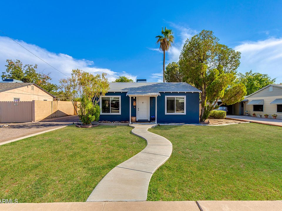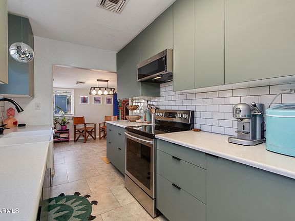 This Midtown charmer blends vintage character with modern style. Offering three bedrooms and one bath across 1,224 sqft, the home features a re-designed kitchen with sleek Euro cabinetry, quartz countertops, and stainless-steel appliances. The bathroom was fully remodeled in 2023 with a new tub/shower and stylish vanity. Outside, a spacious backyard awaits with a private pool, fire pit, and plenty of room to make your own. The detached garage is equipped with plumbing and electricity, providing excellent potential for an ADU or guest casita. Recent upgrades include a new water heater (2025), newer AC (2022), and dual-pane windows. Situated in the desirable Madison School District and just minutes from dining, shopping, and entertainment, this move-in ready home is a rare find.