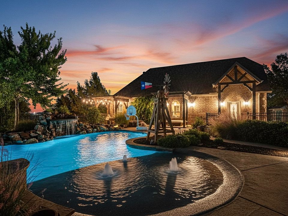 Resort-style living at its finest! This stunning 4-bedroom, 3-bath home offers an office, dining room, living area, and game room—all designed with comfort and luxury in mind. Step outside to a backyard paradise built for entertaining, featuring a sparkling pool with waterfall, grotto, spa, and propane fire pit surrounded by decorative concrete, lush landscaping, and low-maintenance turf.