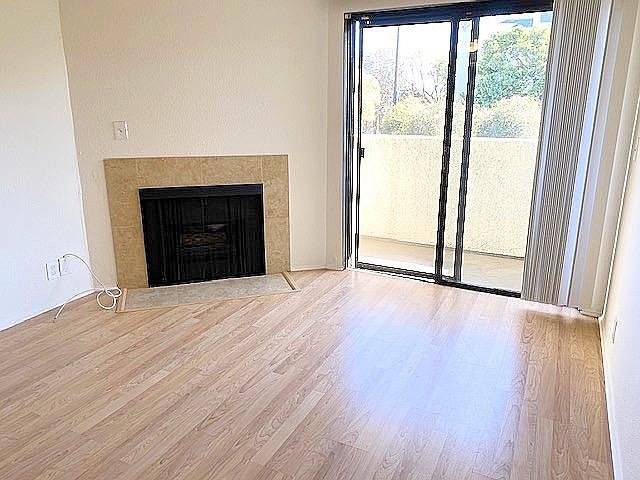 Decorative fireplacePrivate balconyTreetop viewsSpacious open floor planHardwood floorsModern kitchenAmple closets
