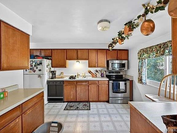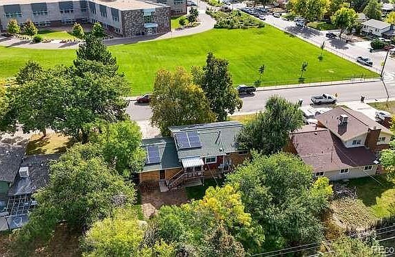 Don't miss this great home in the Chambers Heights community! Great stated home for a new family and the newer school is across the street. Bi-Level home with 2 bedrooms on the upper floor and 2 on the lower floor and one full bathroom and 3/4 bathroom. You will find the following: James Hardie Siding installed March 2009 Color of siding: Country Lane red siding White with tempered Glass bow insert Vinyl Frames and sash rails double pane windows – glass top to bottom – Tilt -in-sashes, dual top and bottom lift handles, Low-E. Water Heater installed in April 2018 plus water connectors and ball valve shutoffs for water. 2018 – Electric outlet for electric car in garage was installed with a permit. Furnace force air gas and central air conditioning new in 2025. Front Door – Regency Windows – Oak grain Textured Steel double front door with kick plate and dead bolt, decorator glass, low-e glass, double glass, Double door easy for opening of stationary side to provide an extra-large opening area. Soffit – Stud above soffit, Arctic White February 2009 and Gutters Seamless 2 x 3 5” cotton white February 2009. Tesla Solar Panels are paid in full ($25,000 value) to help keep your utility bills low. Large lot surrounded by a 6-foot privacy fence - endless potential to create your outdoors! Conveniently located by parks, schools, shopping, the neighborhood is well-connected by public transportation, with the 13th Avenue RTD Station serving as a light rail hub. Additionally, there are multiple bus stops and access to Interstate 225 and US Route 287, 6th Ave, I-70. Just a little TLC to complete your new home.