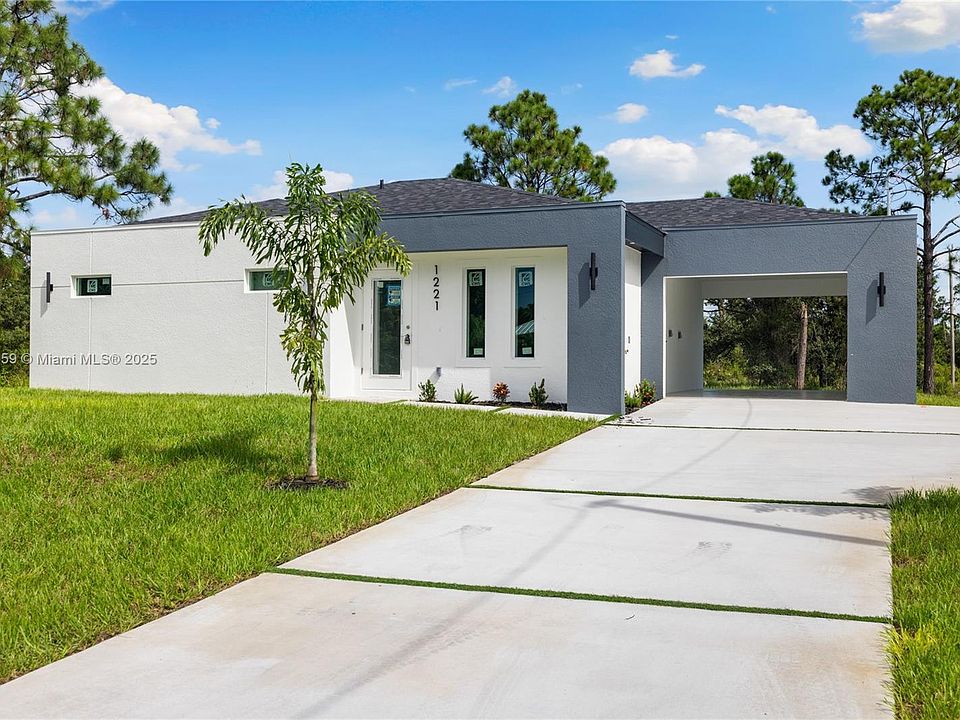 LOCATION! LOCATION! LOCATION! Discover this stunning new construction home in SE Lehigh Acres—perfect for first-time buyers or investors, in a high-growth area of SWFL with easy direct access to Miami, Naples, Fort Myers, Cape Coral, Punta Gorda, Sarasota, Tampa! Offering nearly 1,100 sq ft, this modern open-concept design features 3 beds, 2 baths, and a covered carport with epoxy floor. Enjoy a chef-inspired kitchen with quartz countertops, stainless steel appliances, and soft-close cabinets. The master suite boasts a walk-in closet and glass shower. Home includes tile floors, impact windows, washer/dryer, irrigation, in-wall pest system, and space for a future pool. Additionally, it comes with the 2-10 Home Buyers Warranty, ensuring comfort and quality of life in the growing SWFL area.