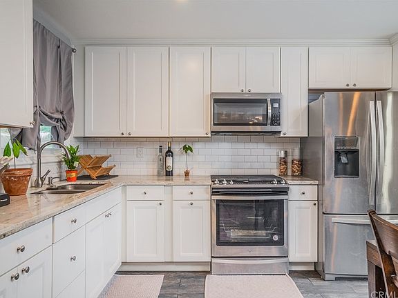 LOOK NO FURTHER!!! This is the house you've been looking for. Pull up to your front door driveway to the beautiful landscapedhouse with 9 large palm trees to welcome you. Walk in to your large open living room with 2 large windows with a view to yourblue sparkling pool. The common space and baths have faux wood ceramic tile and is lit up by recessed lighting throughout.Kitchen is open concept to the living room. Enjoy a beautiful fully remodeled kitchen featuring white cabinets, granite countertops, white subway tile back splash. Enjoy two stunning fully remodeled bathrooms. Both baths feature faux marble tile, withbrushed nickel hardware, huge glass vanity mirrors with ample shelving space. Both baths have vintage inspired vanities andrecessed lighting. The 2nd bath features a Jacuzzi tub for you to come relax after long days. There are 3 large bedrooms withcarpet flooring. You have to come see in person to appreciate and make this home yours!!!