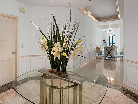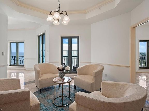 Best value! Situated along the Gulf of Mexico, you'll discover a luxurious beachfront penthouse in a boutique building, home to 24 residences. Welcome to Via Delfino, a highly coveted gem in the heart of Naples, near Four Seasons Resort and the renowned culinary delights, galleries and shops of the downtown area. This penthouse offers nearly 4,000 square feet of living space under air, providing you with freedom to personalize it to your desire. Notably, this home boasts a cherry wood library that can be transformed into an additional living or dining space. Craftsmanship of the highest caliber is evident throughout, with cabinetry adorning the library, primary baths, fireplace mantel and highlights of hand-painted European tile. Additional features include two primary baths, an abundance of closets, 10-foot ceilings, and a skylight creating an ambiance of spaciousness and natural light. The list of amenities is equally impressive, featuring an on-site manager, 60-foot swimming pool, private beach access with lounge area, a natural gas generator and a dedicated electric vehicle charger. Via Delfino 902 is designed for the ultimate resort living.