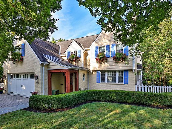 An exceptional home on a quintessential street, blending timeless details with modern updates. The chef's kitchen boasts a professional Viking oven, high-end appliances, & custom cabinetry. The dining room is a true showpiece with its tray ceiling & lighted architectural dome. French doors open to the upper terrace, while the study offers built-in shelves & a window seat. A Dutch door walkout leads to the side yard. The primary suite includes a luxurious bath, & the lower-level rec room features custom cabinets & designer lighting. Outdoors, enjoy a charming bluestone paver walkway, custom window boxes with irrigation, & an enclosed rear porch with fireplace overlooking the wooded yard. All offers open 24 hours. No escalation clauses.