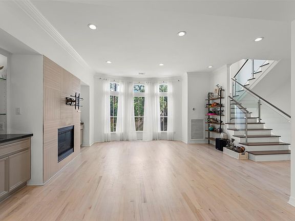 - Exterior features: 1 Bedroom Down - Not Primary BR, 2 Staircases, Architecture Style: Contemporary/Modern, Attached, Corner Lot, Dry Bar, Floor Covering: Stone, Flooring: Stone, Flooring: Wood, Formal Dining, Heating: Gas, High Ceilings, Lot Features: Corner Lot, Primary Bed - 3rd Floor, Utility Room, Walk-In Closet(s)