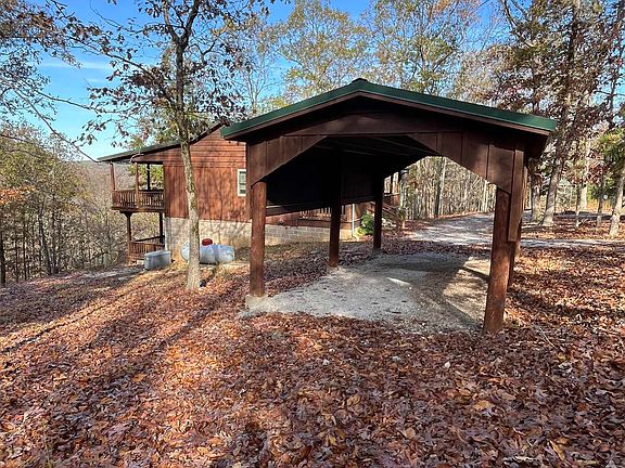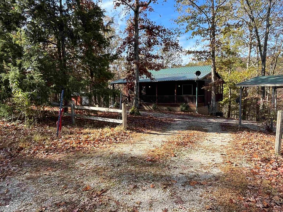 Beautiful setting at the end of the road. This Home has 2 bedrooms and 2 baths on the main level with walk-in showers and laundry hookups, full kitchen with Appliances and gas fireplace in the Living room. Cozy secluded Cabin feel with over 1000 sq ft of covered deck space to enjoy the outdoors. Property has 2 storage building, 2 carports, a Cadillac chicken coop and an RV cover with Electric. If needed there is a propane generator for backup power. The basement is partially finished with a half bath and Laundry hookups. New roof was put on in 2024. There are great views off the back porch and this would make a great Vacation home, Rental or permeant residence. Call me today for an appointment!!