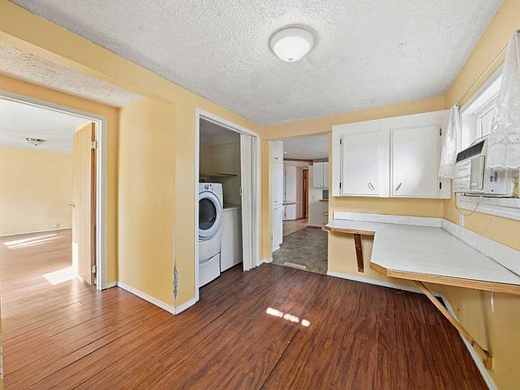 A 2 bedroom home on a large lot! The front entryway greets you to the living room that features a vinyl window with view to the front yard. White melamine kitchen cabinets are complemented by full tile backsplash and an island. There are two bedrooms both with laminate flooring. The back entryway has a laundry area. The large yard has a wood deck and an oversized shed that could be used as a shop. Close proximity to amenities. New hot water tank just installed.